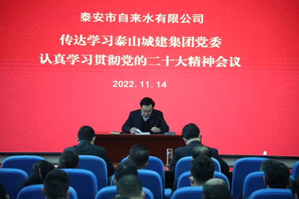 ?xxxx11月14日下午,市自來水有限公司組織召開會議,傳達(dá)學(xué)習(xí)《泰山城建集團(tuán)黨委關(guān)于認(rèn)真學(xué)習(xí)宣傳貫徹黨的二十大精神的通知》,公司黨委委員、紀(jì)檢書記暴勇生同志主持會議并傳達(dá)學(xué)習(xí)文件精神,公司領(lǐng)導(dǎo)班子成員出席會議,中層副職以上干部及中層助理參加會議。
