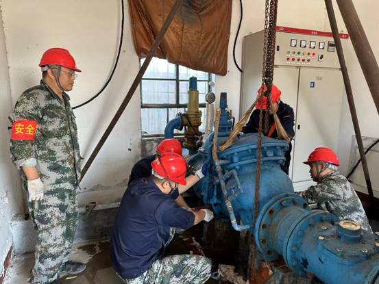 ? ?? ??剛忙碌了一夜,但是他們顧不上休息,又一次挺身而出,趕赴汶口,配合泉河水廠維修汶口水源地3號(hào)泵房電機(jī)和止回閥。隊(duì)員們一起安裝道軌和電動(dòng)倒鏈,拆除罩殼和壓蓋,更換好電機(jī)軸。在更換止回閥過程中隊(duì)員們遇到了困難,更換止回閥需將泵房外出水閥門關(guān)閉,而該閥門為老式蝶閥,井深兩米,空間狹窄,環(huán)境惡劣,井底布滿泥漿,井口處堆放了許多玉米稈,難以清理。隊(duì)員們一點(diǎn)一點(diǎn)地將玉米稈移出,嚴(yán)格按照有限空間作業(yè)規(guī)定,每次兩人穿上雨靴下到井底關(guān)閉閥門。由于閥門使用時(shí)間已久,銹蝕嚴(yán)重,開關(guān)不靈,且緊貼井壁,需兩人緊密配合,耗費(fèi)較大力氣和很長(zhǎng)時(shí)間才能關(guān)閉一圈。隊(duì)員們輪流上陣,接力奮戰(zhàn),你擰一圈,我擰一圈,累了就在旁邊站上兩分鐘,渴了就喝上幾口水。雖已進(jìn)入秋天,搶修隊(duì)員們干得熱火朝天,衣服濕了干、干了濕,滿臉污漬和汗水也顧不上擦一擦。止回閥更換完畢后,出水閥門打開。下午三點(diǎn)鐘,所有工作終于完成,這時(shí),隊(duì)員們已經(jīng)累得說不出話,才想起午飯還沒有吃。