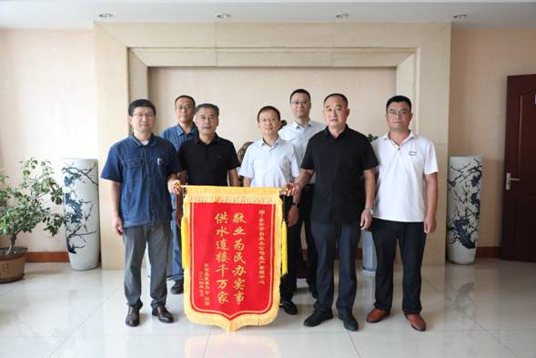 ?? ???? ? “感謝市自來水公司的工作人員大雨天連夜搶修,保障我們小區(qū)正常用水”。 7月12日,泰前居委會范主任一行將一面寫著“敬業(yè)為民辦實事,供水連接千萬家”的錦旗送到泰安市自來水有限公司生產(chǎn)管理中心,對搶修人員連夜冒雨搶修電纜保障民生供水表達了衷心感謝。