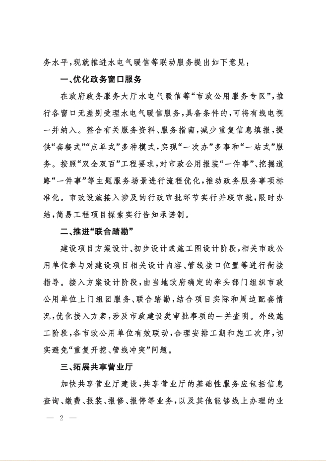 您當(dāng)前位置》政策法規(guī)》關(guān)于推動(dòng)水電氣暖等聯(lián)動(dòng)服務(wù)的指導(dǎo)意見(jiàn)